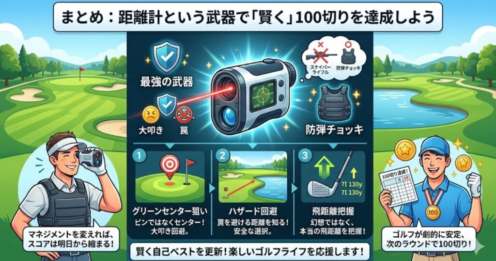 【初心者必見】100切りにゴルフ距離計は意味ない?レッスンプロが教える「スコアを買う」使い方