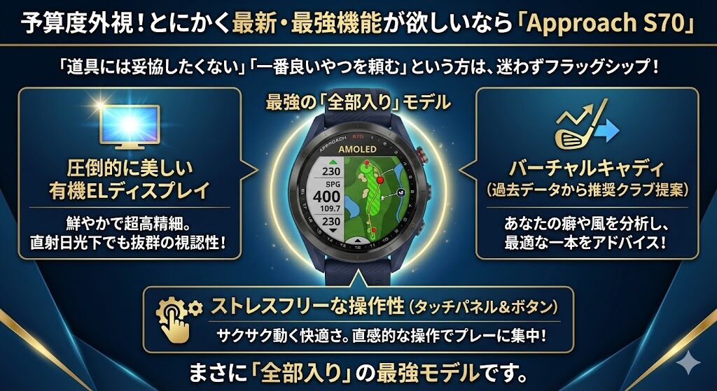 1. 予算度外視!とにかく最新・最強機能が欲しいなら「Approach S70」