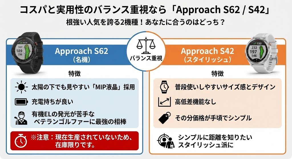 3. コスパと実用性のバランス重視なら「Approach S62 / S42」