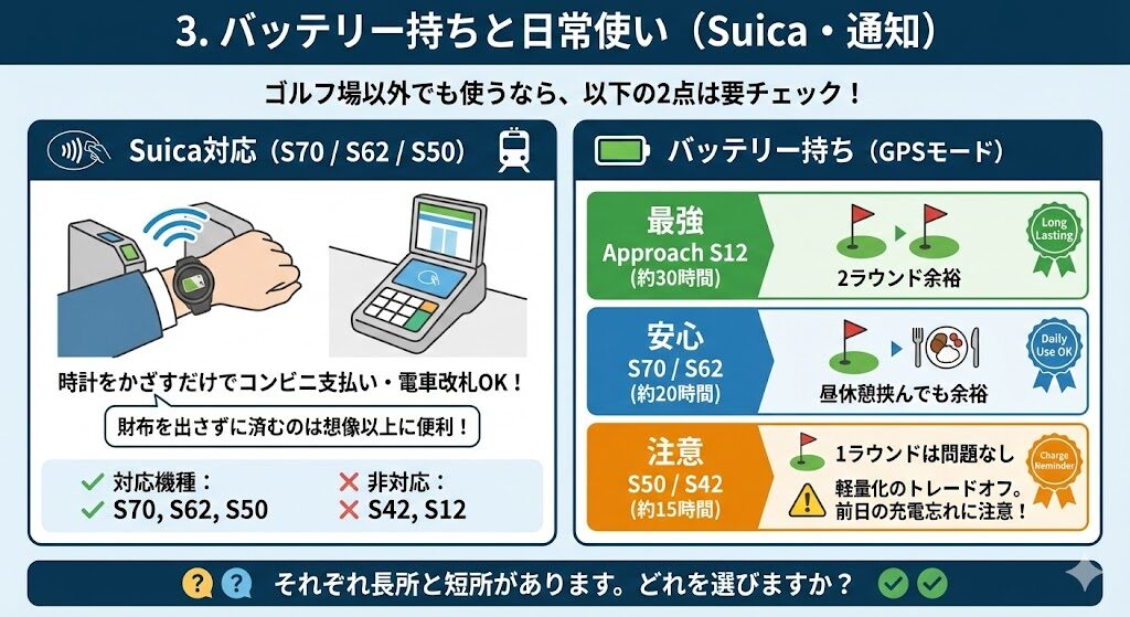 3. バッテリー持ちと日常使い(Suica・通知)