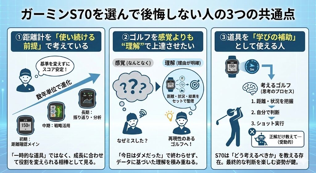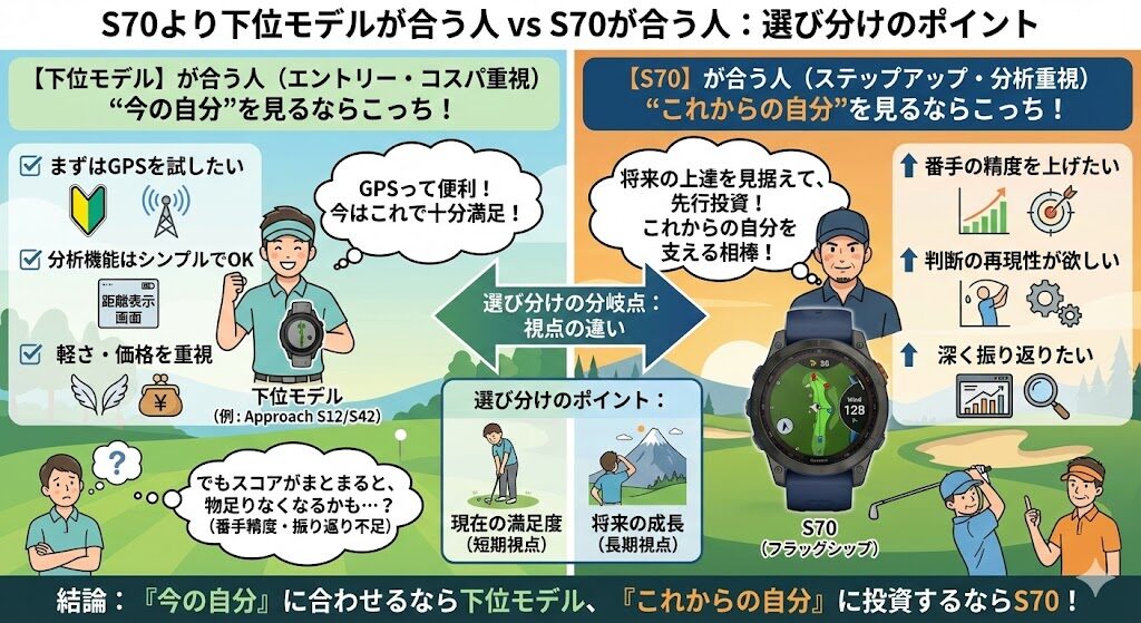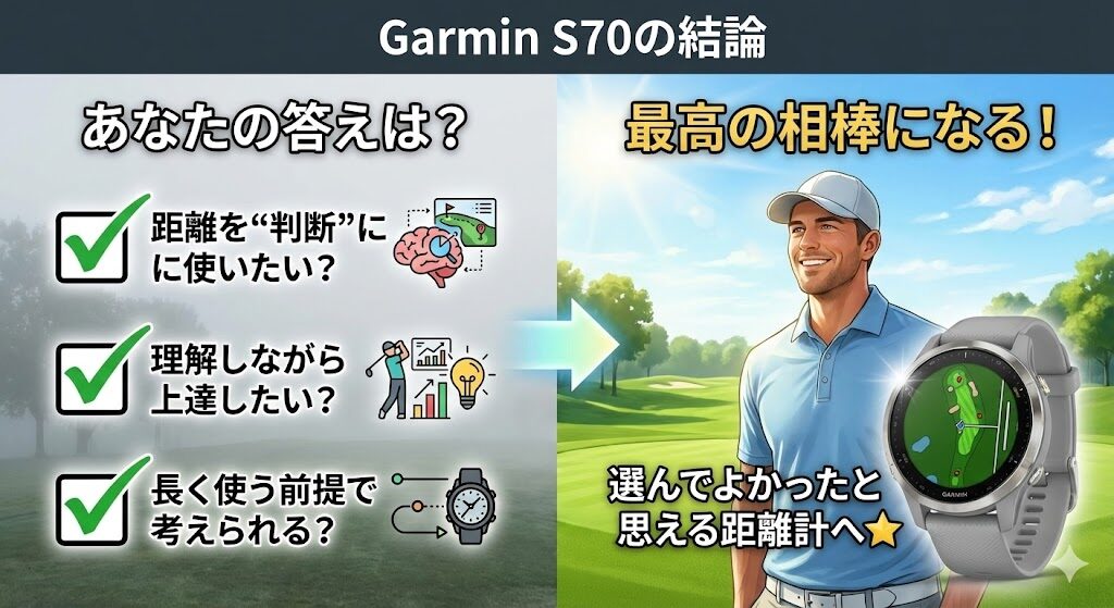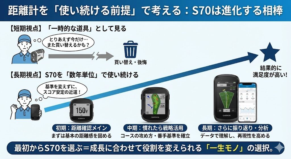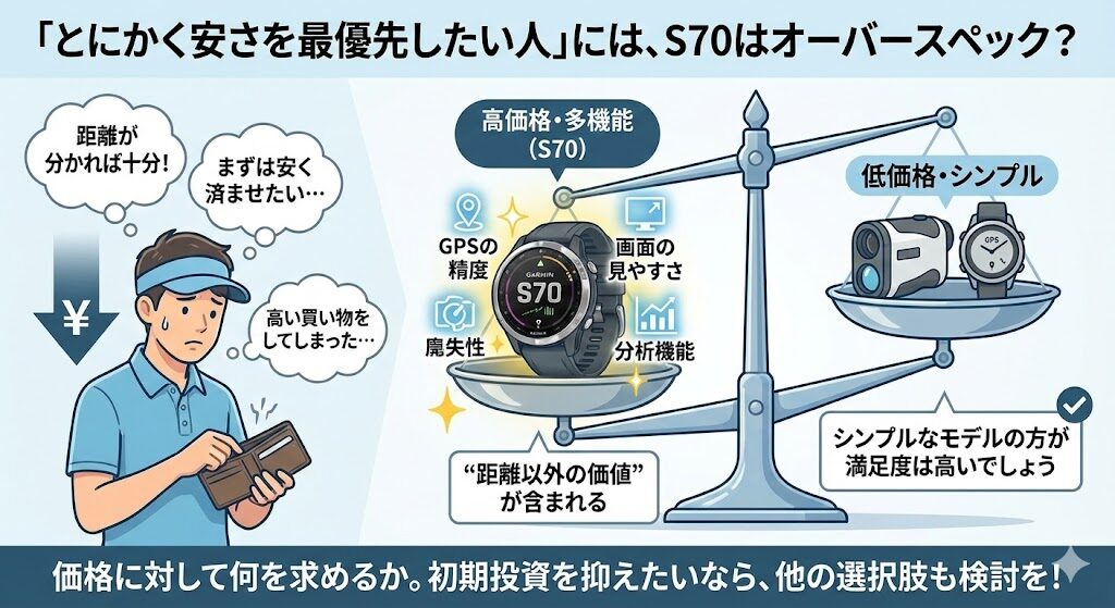 まとめ|ガーミンS70は「買う人」を選ぶ距離計