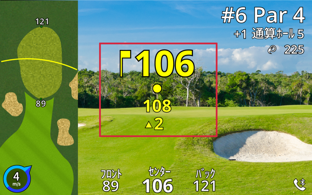 - 傾斜補正(PlaysLike距離)+風向・風速表示を統合。高低差を“プレー戦略”として見せるのが特徴。