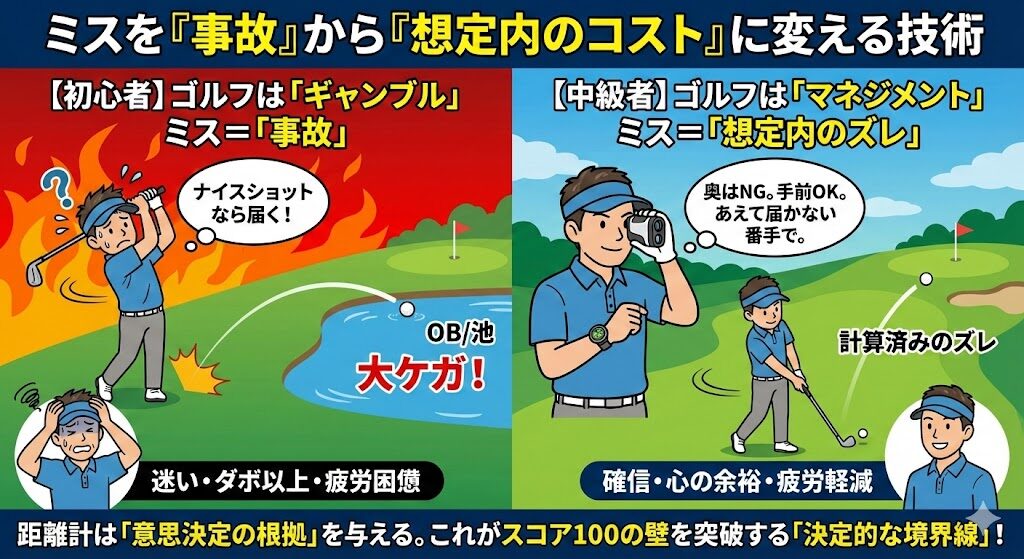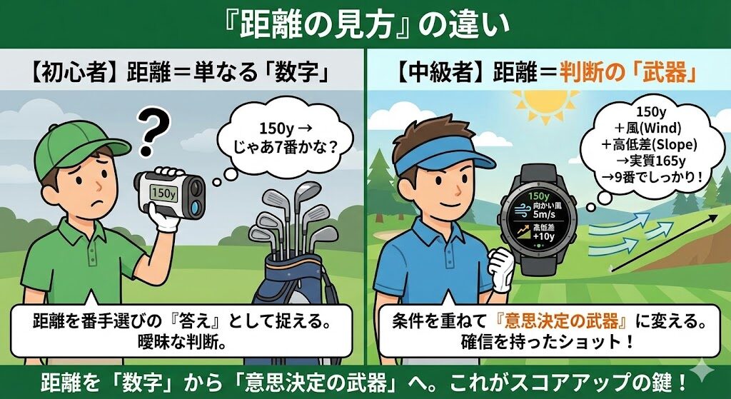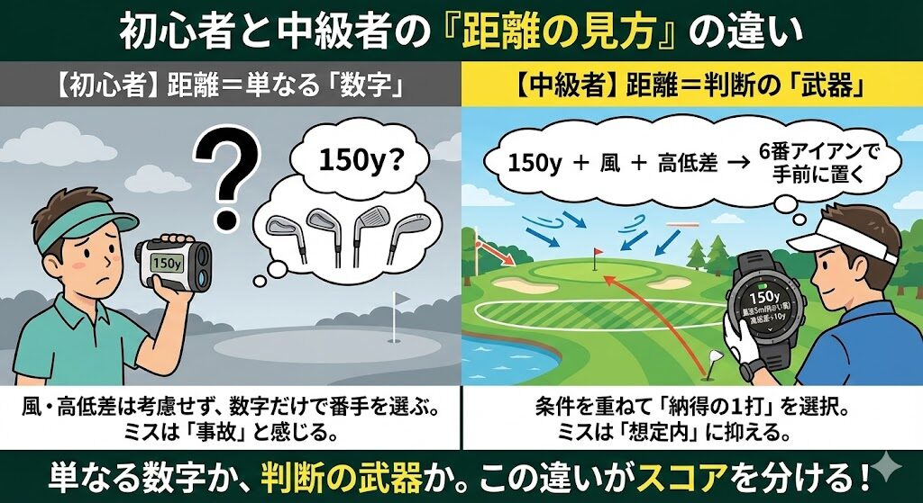 初心者と中級者の差は、スイング技術よりも「距離をどう捉えているか」に表れます。