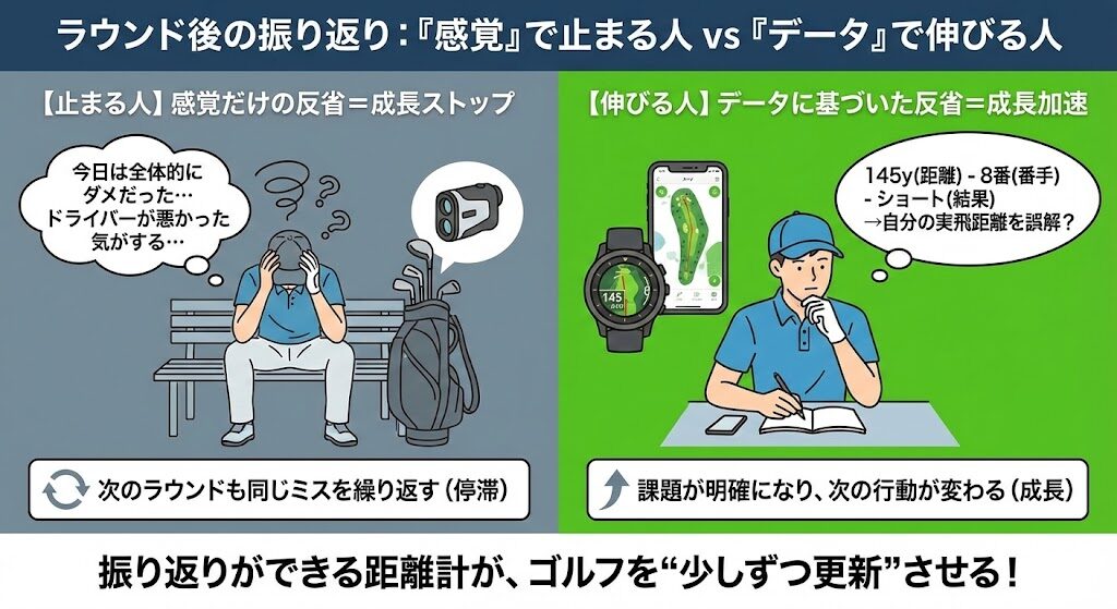 ラウンドが“経験”ではなく“データ”として残ります。
