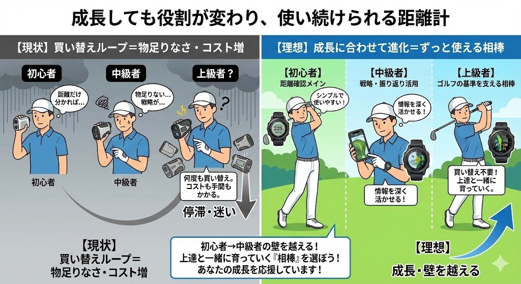 距離計選びの考え方を、もう一度整理したい方へ。 - 👉 ガーミンS70が80台を安定させた理由